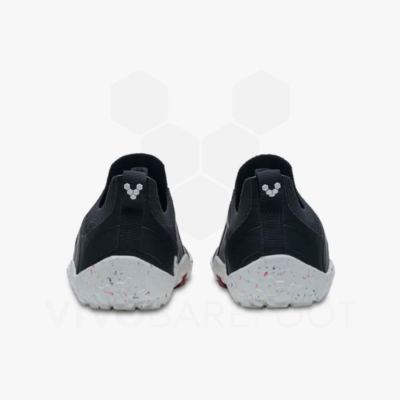 It features a knit upper for enhanced breathability and purer trail mobility, made with recycled materials, and a sock-like construction to keep out trail debris.