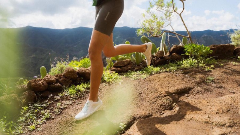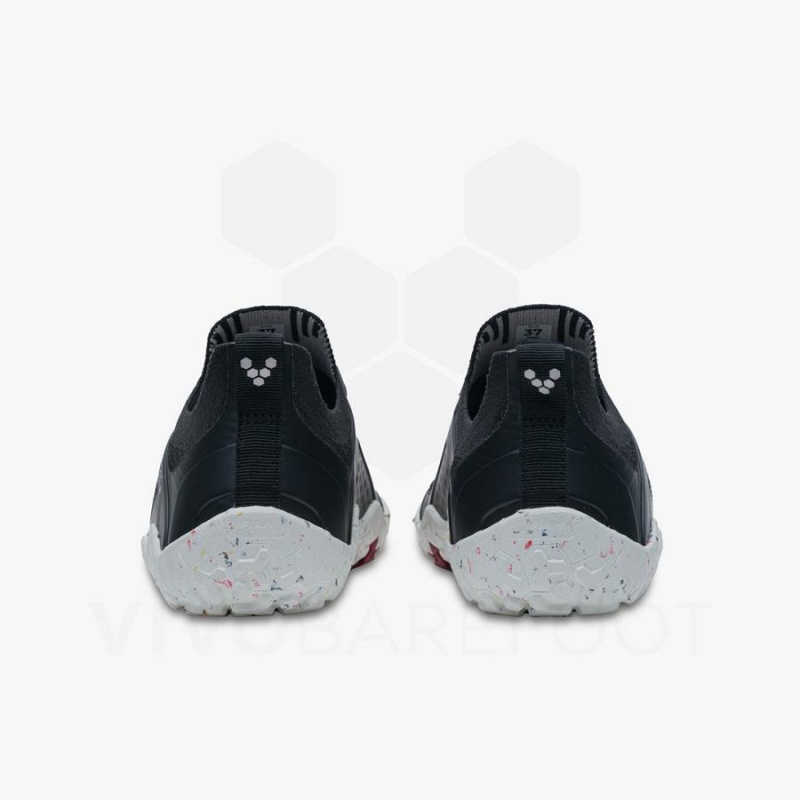 It features a knit upper for enhanced breathability and purer trail mobility, made with recycled materials, and a sock-like construction to keep out trail debris.