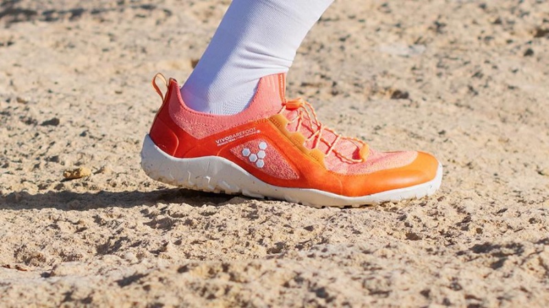 It features a knit upper for enhanced breathability and purer trail mobility, made with recycled materials, and a sock-like construction to keep out trail debris.