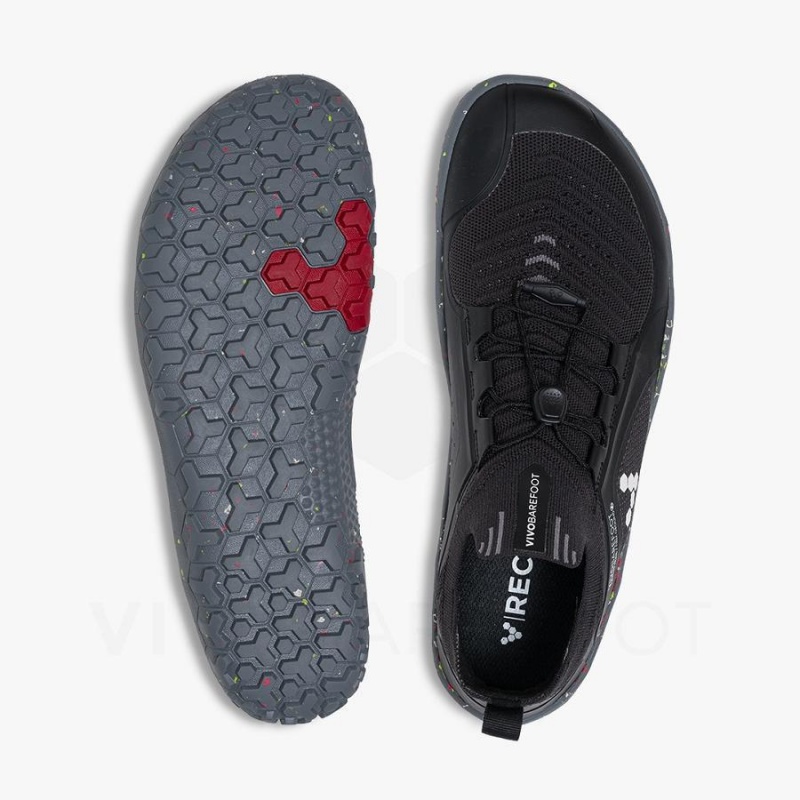 It features a knit upper for enhanced breathability and purer trail mobility, made with recycled materials, and a sock-like construction to keep out trail debris.